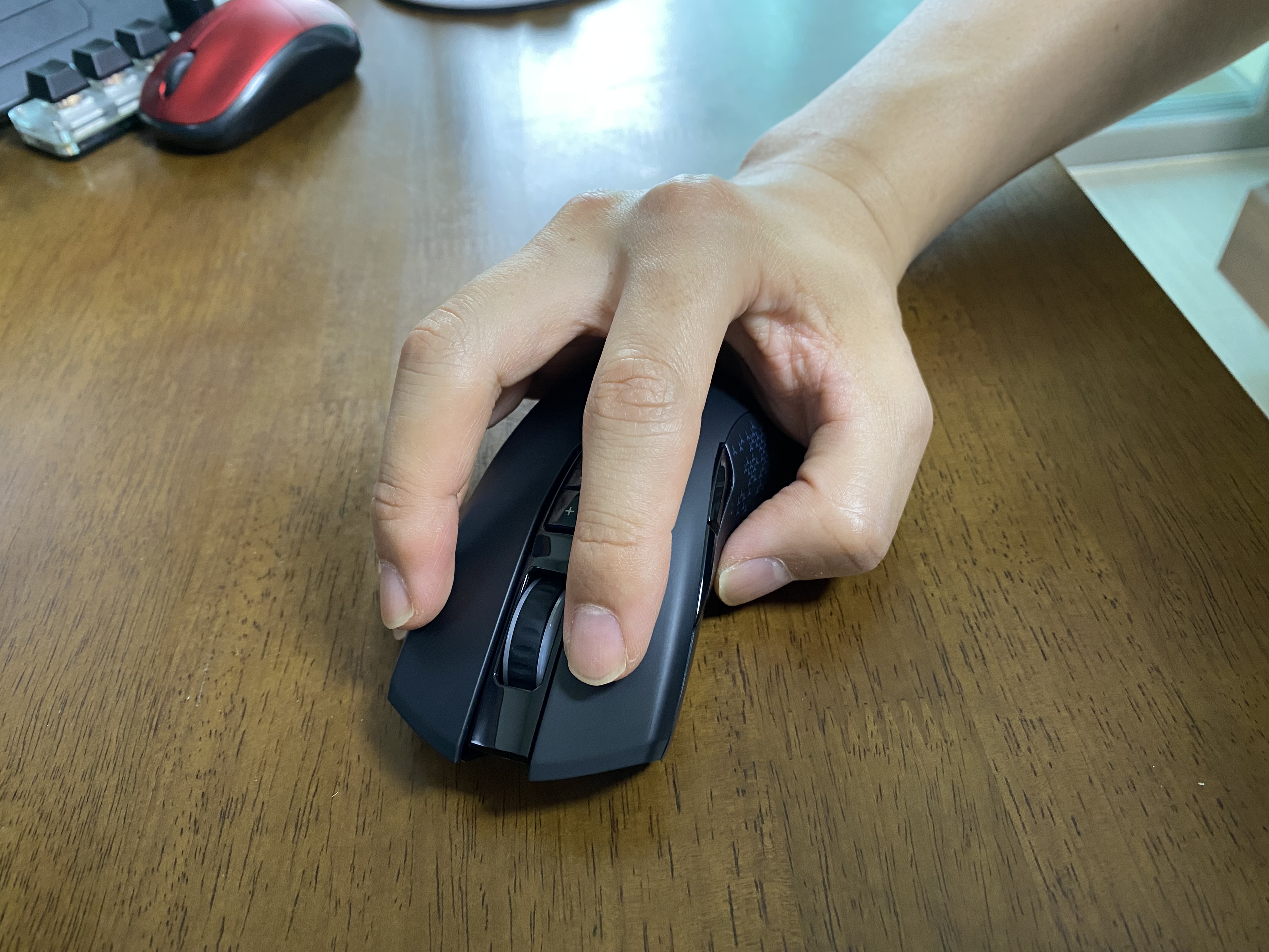 이 마우스에서 가장 마음에 안 드는 점이 바로 옆에 있는 이전 페이지, 다음 페이지 버튼입니다. 정말 이게 최선이었는지 의심스럽습니다. 로지텍 G102까지는 아니더라도 중국산 저가 마우스도 이 제품보다 측면 버튼 감도가 좋을 것 같습니다. 이 두 버튼을 정말 자주 사용하는 사람으로서 이건 못 참겠네요. 딸깍거림도 그렇고 눌러지는 정도도 그렇고 다 별로입니다. 위쪽 DPI버튼을 하나로 줄이고 이 버튼에 좀 더 좋은 부품을 사용해서 개선되길...