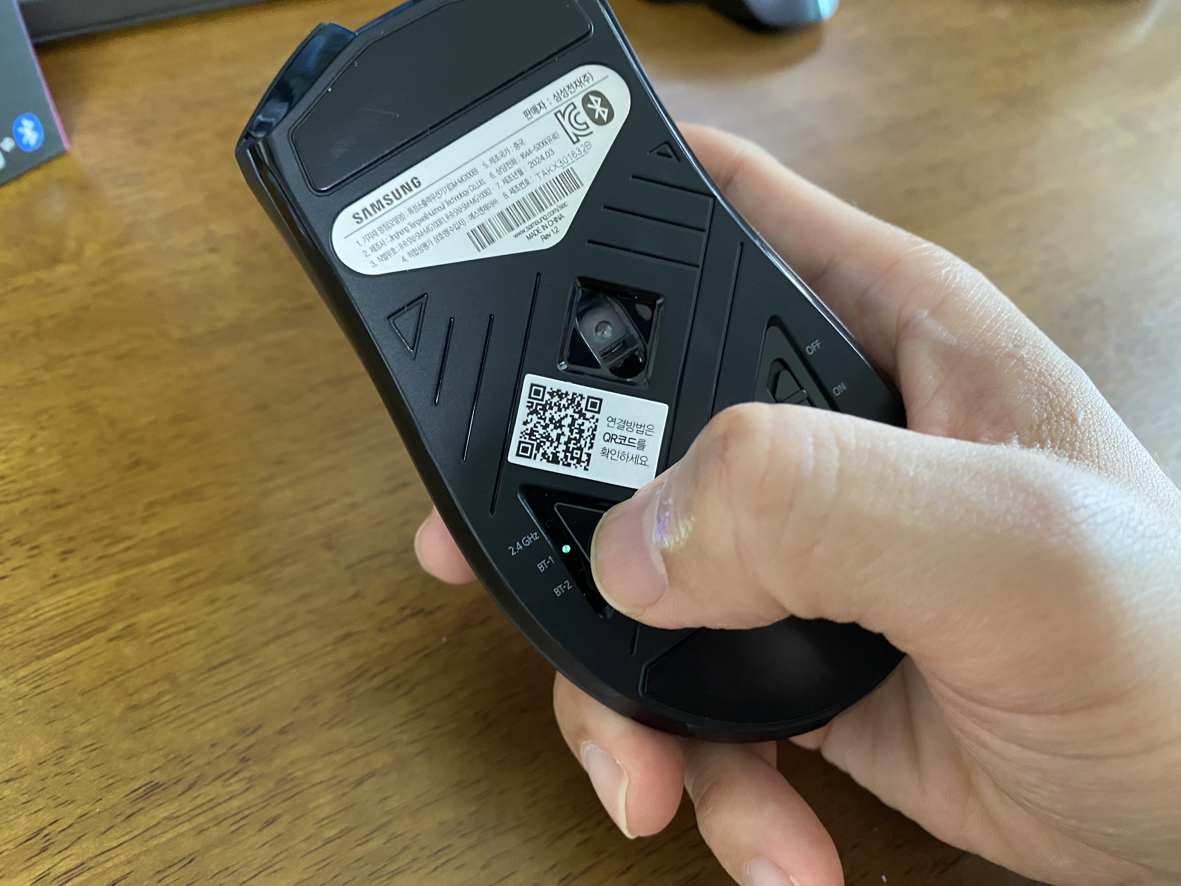 삼성 마우스 전원을 켜고 무선 모드를 변경합니다.