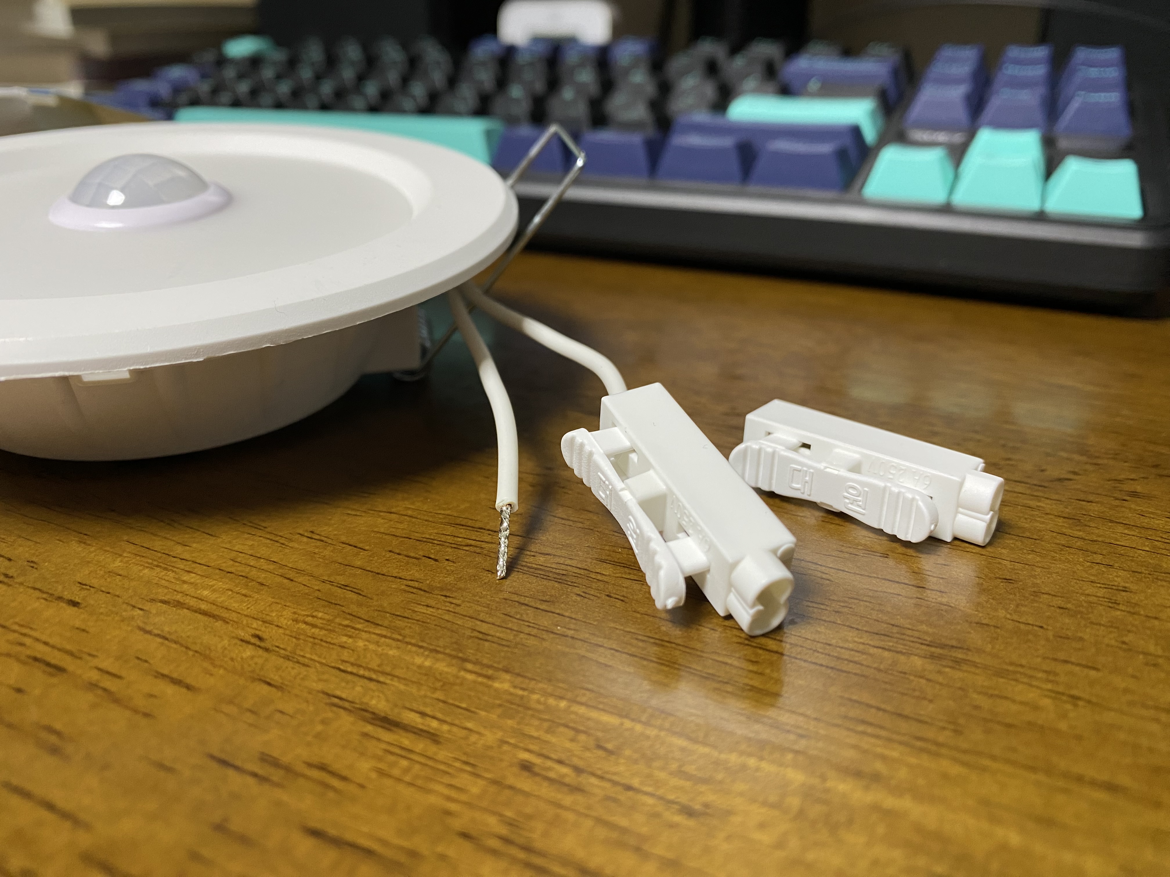 매입형 센서등 자체는 아주 단순한 제품입니다. 센서와 LED등이 연결된 제품이죠. 전기선 두 가닥이 나와있는데 천장에 있는 전기선을 여기에 연결을 해주면 됩니다. 참고로 창전에 전기선이 3가닥이면 녹색선은 접지선이니 다른 2개의 전선에 제품을 연결하면 됩니다. 전기 만지는 것에 자신이 없으면 주변 전문가의 도움을 받으세요. 전기는 잘못 사용하면 정말 위험합니다. 화제라도 나면 정말 큰일입니다.