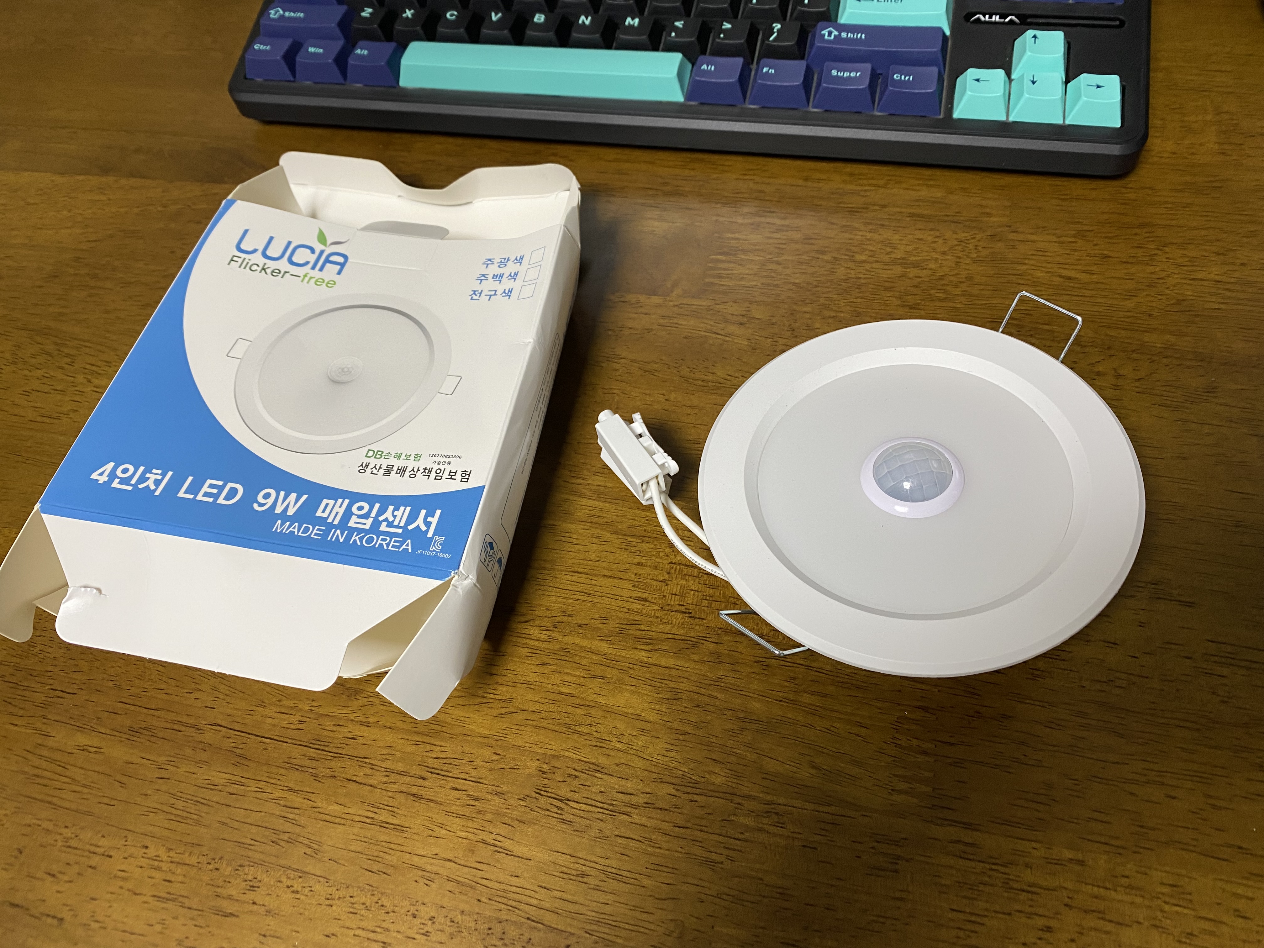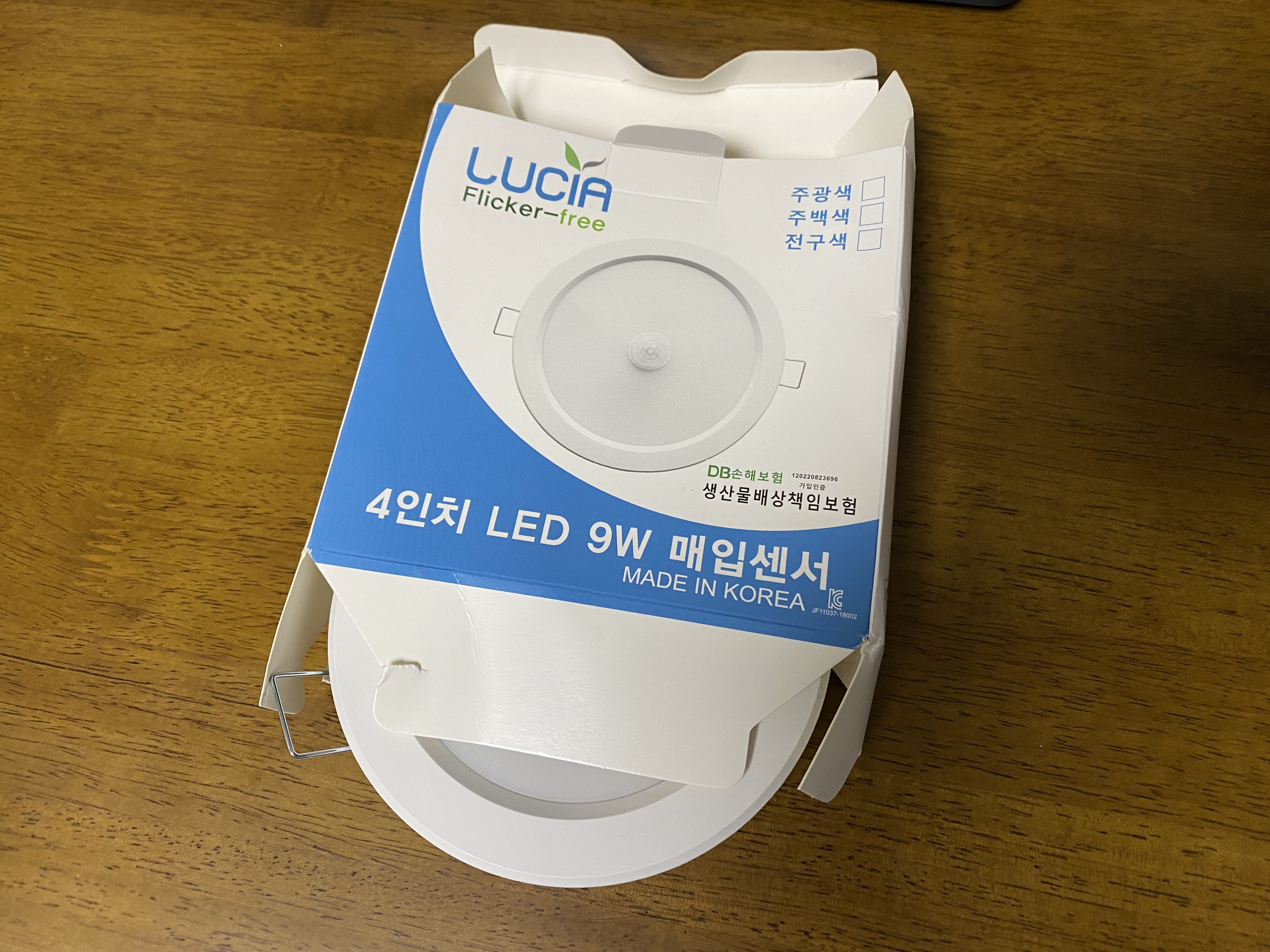쿠팡에서 구매한 LUCIA 루시아 4인치 LED 9W 매입센서등. 정말 만족스럽습니다. 센서도 제대로 잘 작동하고, 9W라 작은 창고를 밝게 비추기에는 부족함이 없는 제품이라 생각합니다.