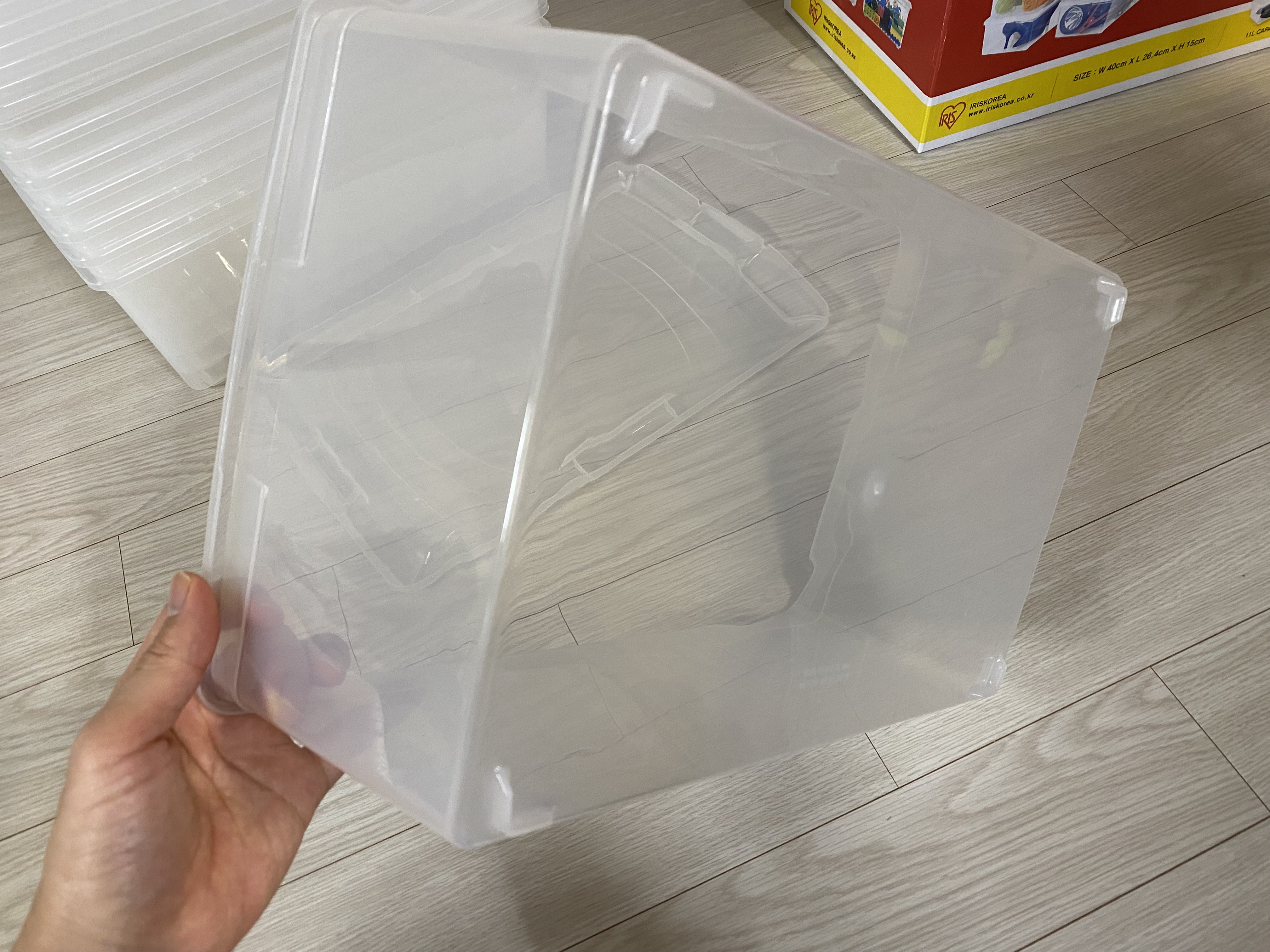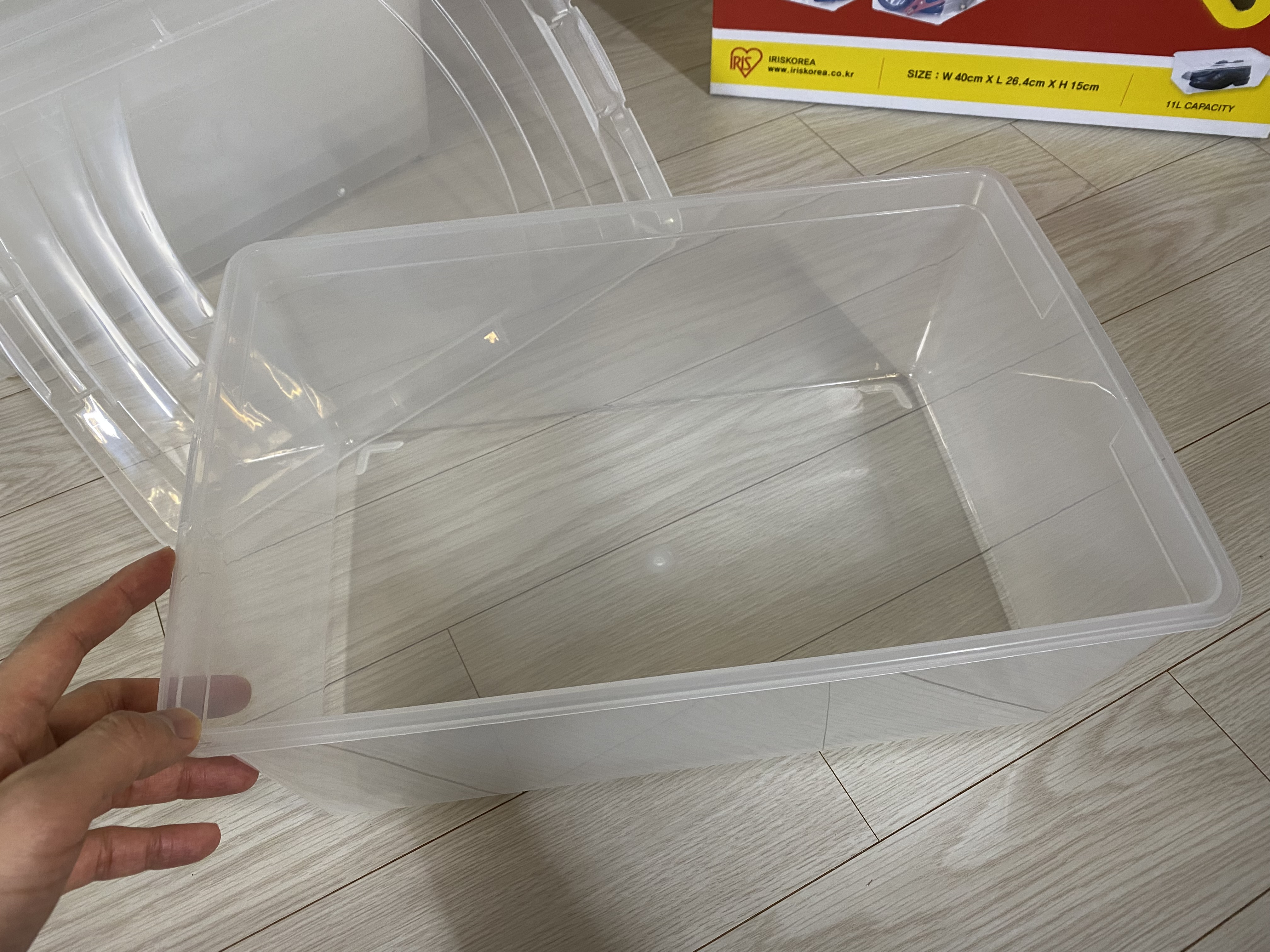 아이리스 투명 보관함은 아주 튼튼하지도 약하지도 않는 그냥 적당한 강도의 투명 플라스틱으로 되어 있습니다.