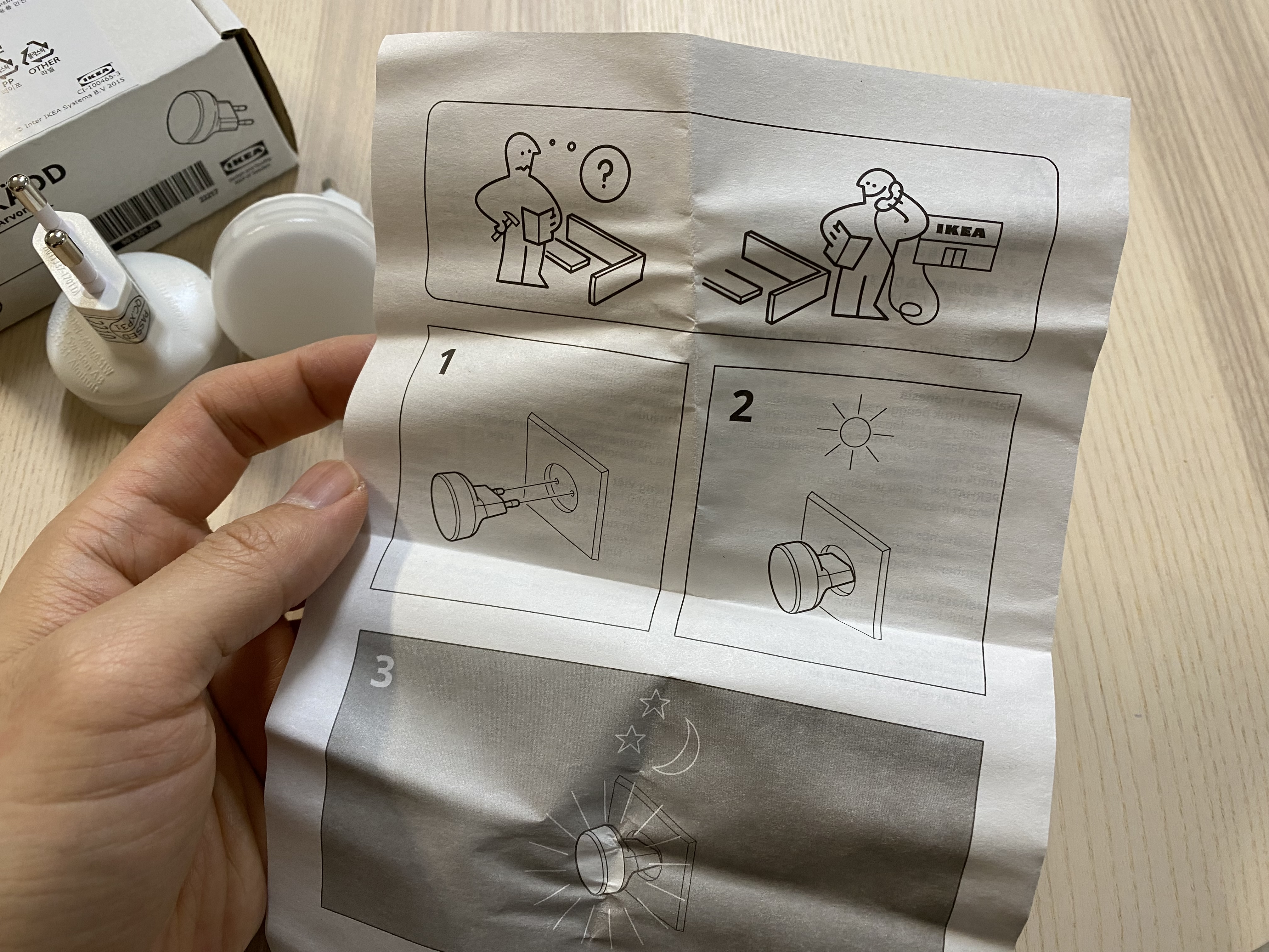이케아 MORKRADD 뫼르크레드를 개봉한 모습. 아주 간단한 설명서와 LED 센서등 2개가 들어있습니다. 이렇게 해서 가격은 7900원입니다.