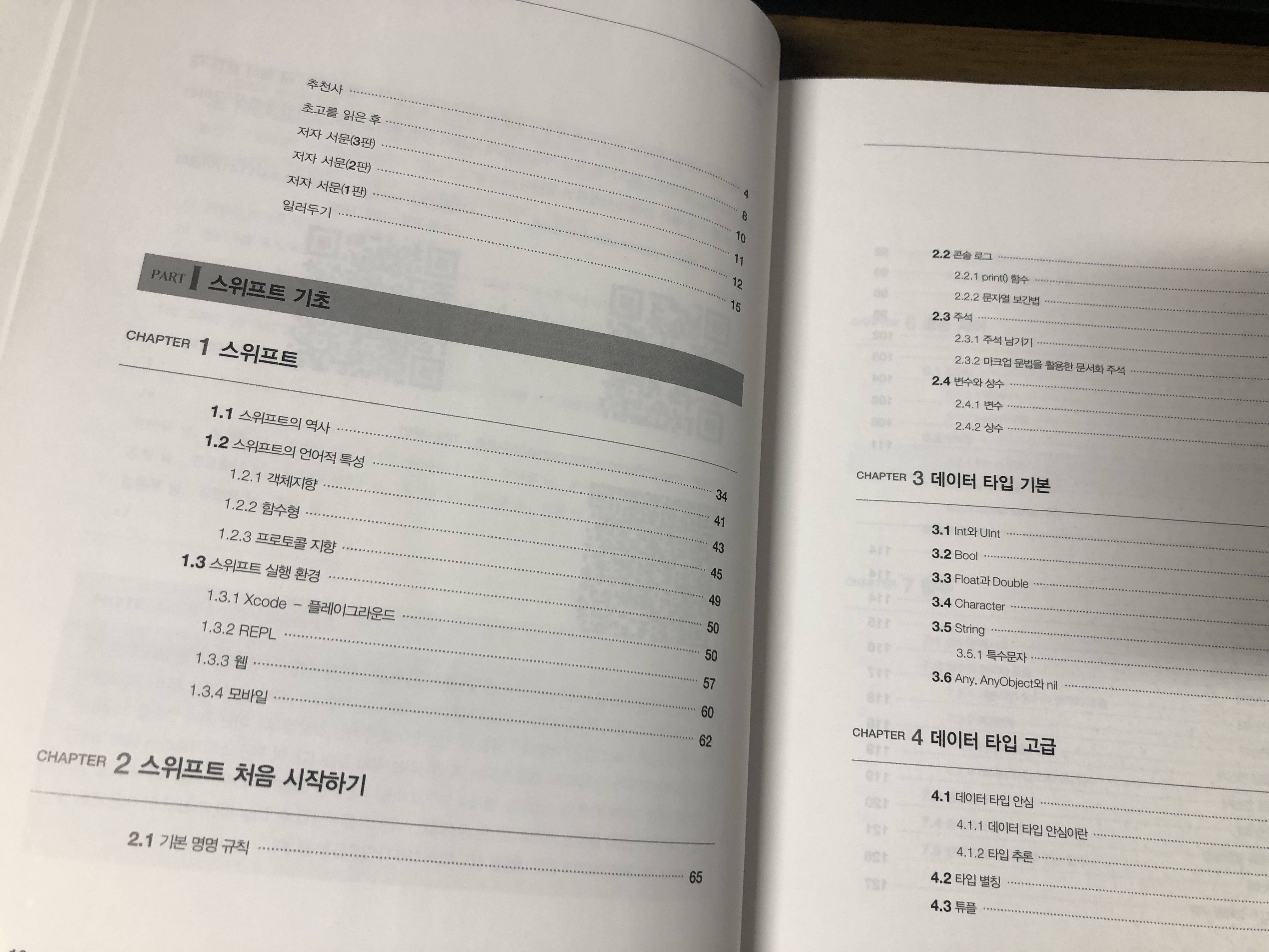 보통 프로그래밍 언어 문법을 설명하는 책은 지루하고 딱딱하기 쉬운데 ‘SWIFT 스위프트 프로그래밍 3판’은 부드럽게 잘 읽히는게 특징입니다. 번역서가 아니라 우리나라 사람이 직접 지은 책이고, 3판까지 오면서 내용이 잘 다듬어져서 그런 것 같습니다.