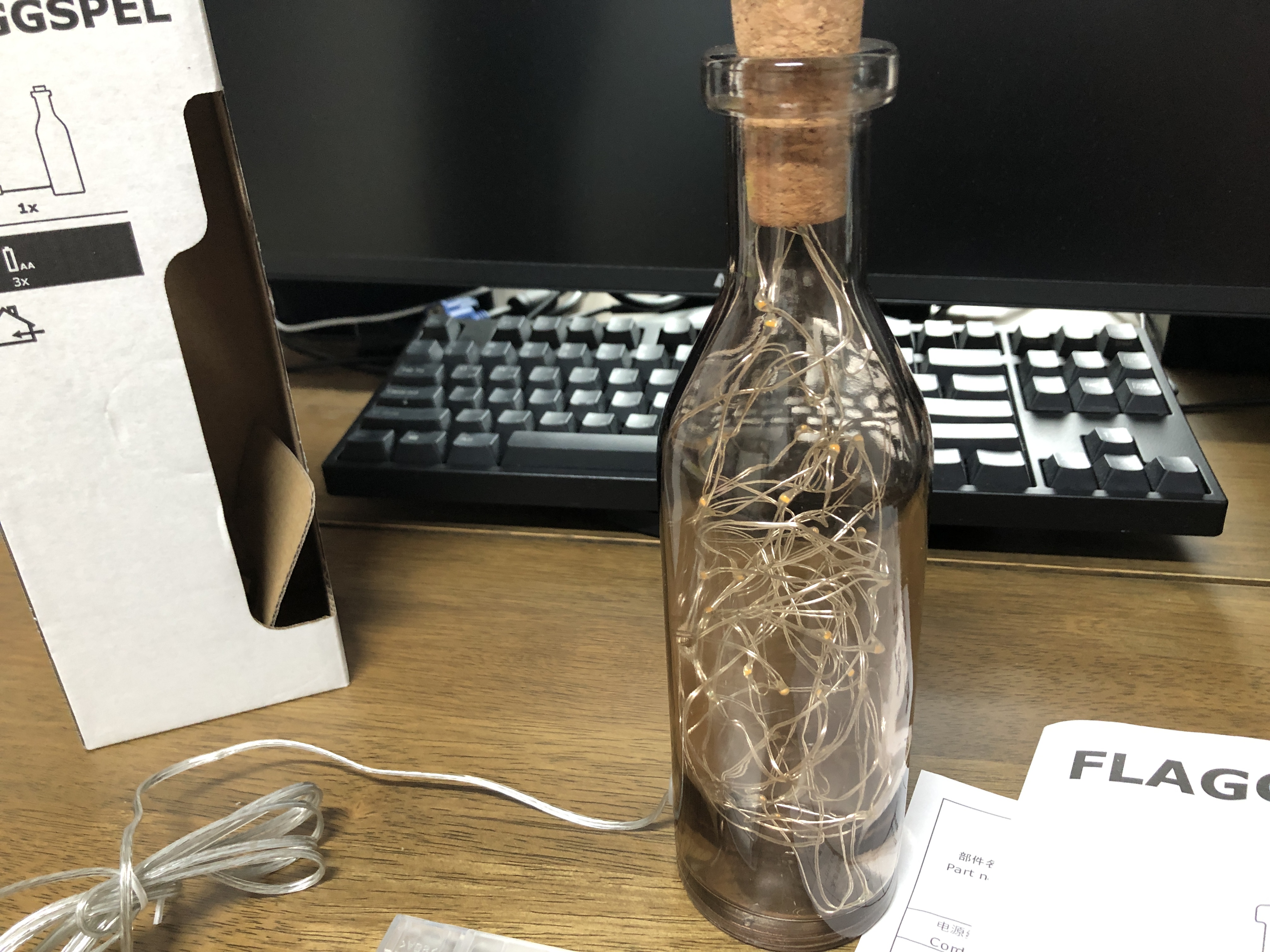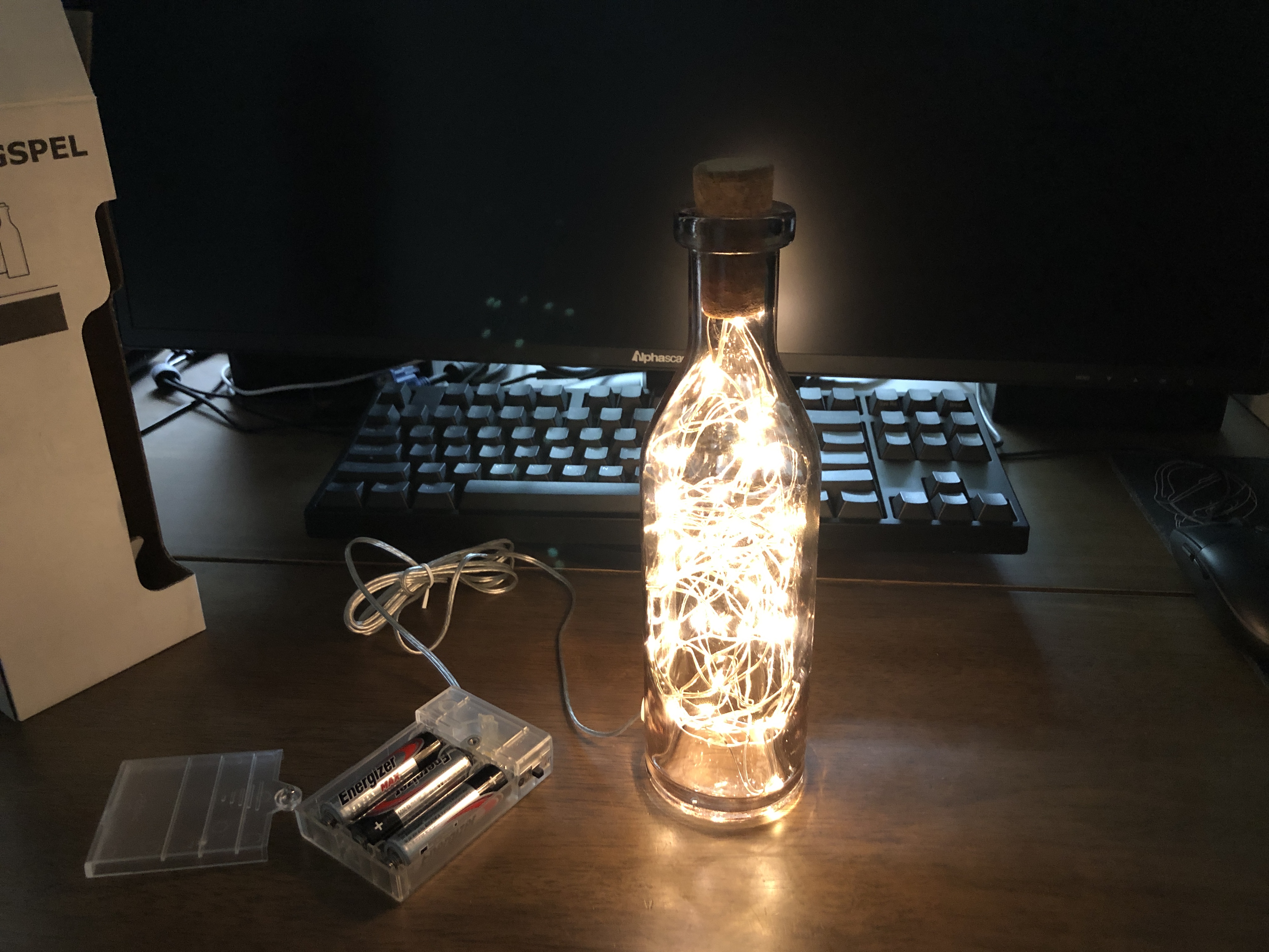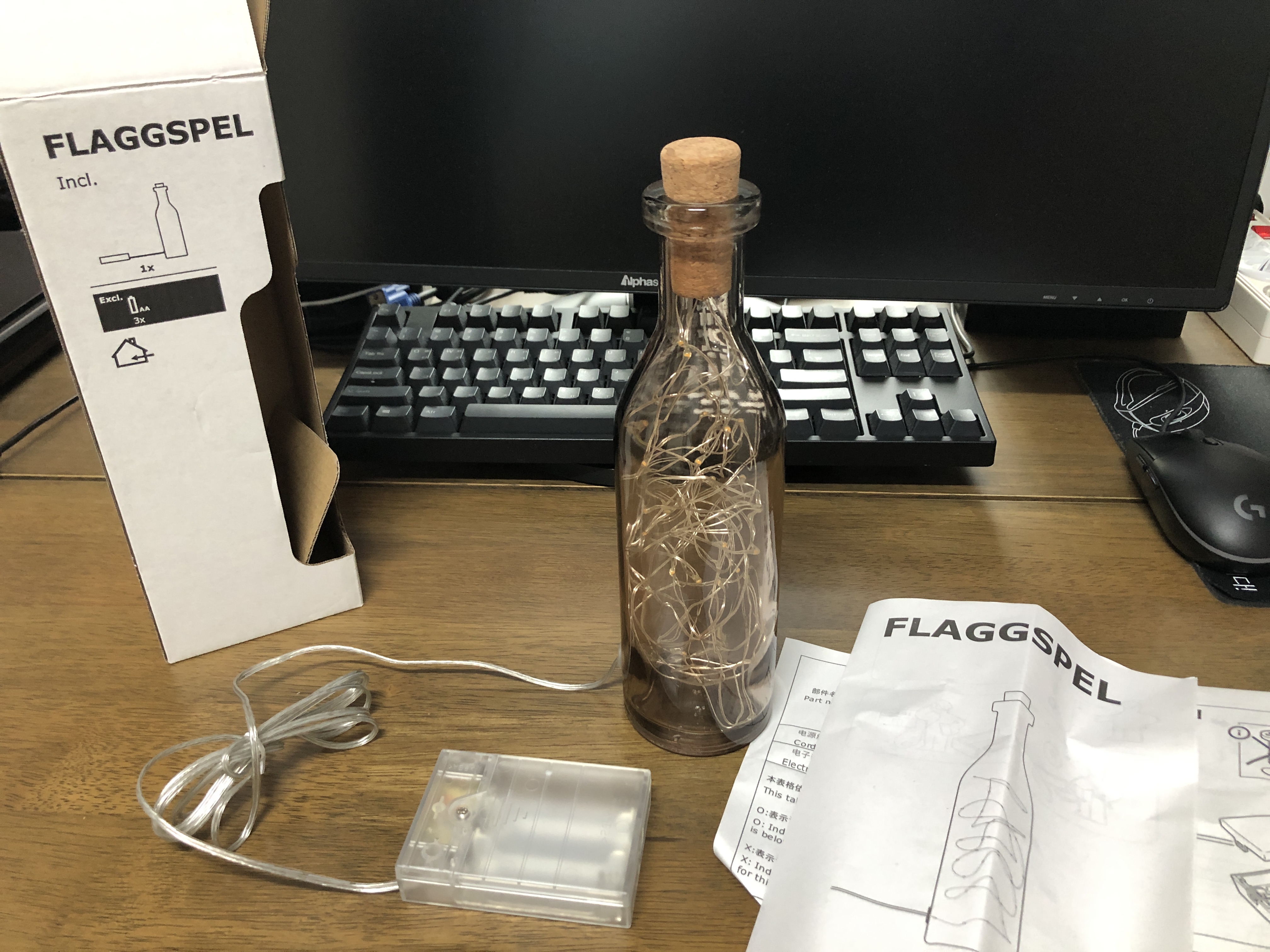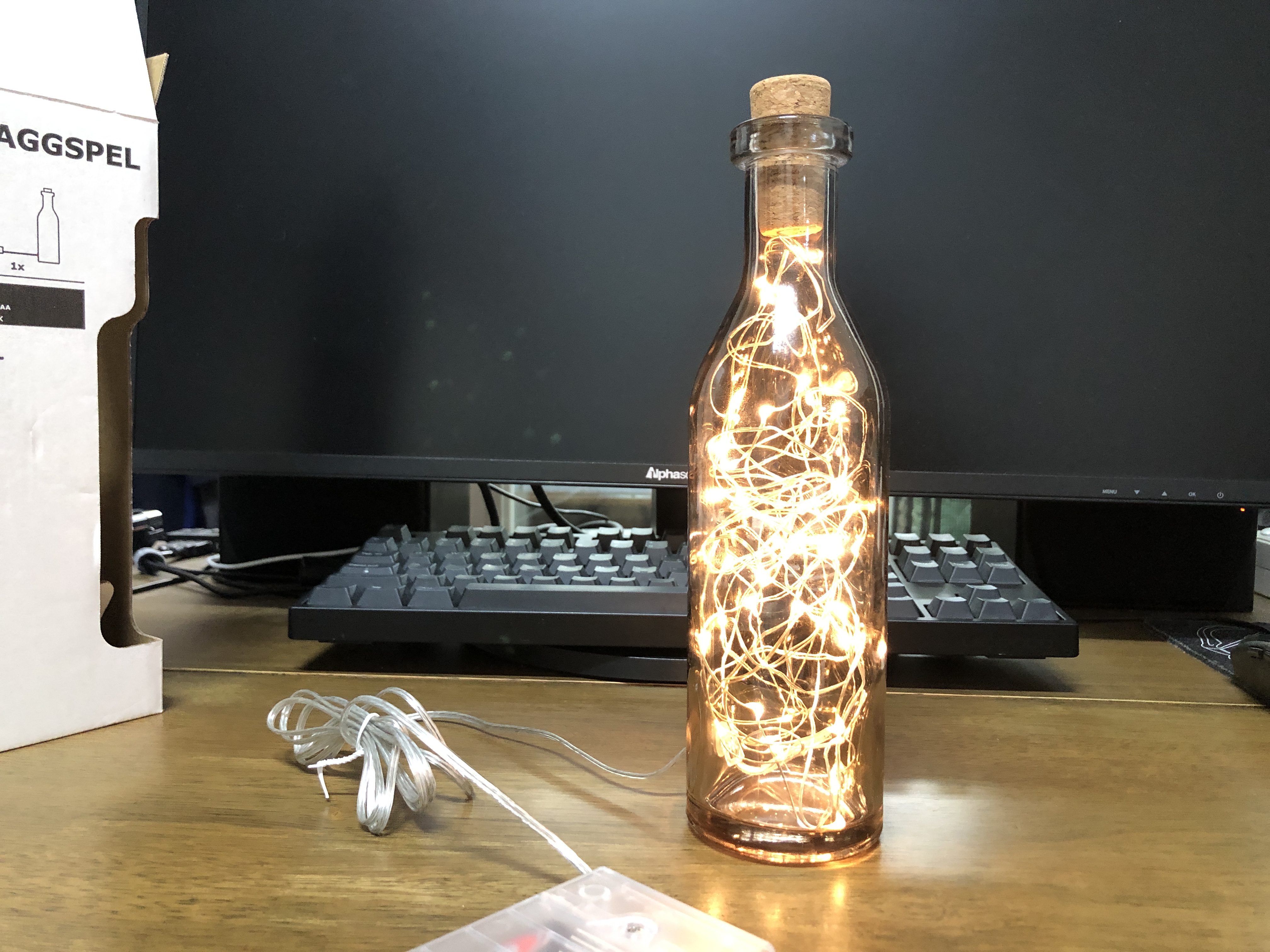 이케아 FLAGGSPEL 플락스펠 병 모양 유리 조명. 크리스마스, 캠핑과 어울리는 제품이라 생각합니다. 이런 조명을 보면 힐링이 되는 사람이라면 집에 하나 정도 괜찮을 것 같습니다. 집들이 선물로도 추천하고 싶네요.