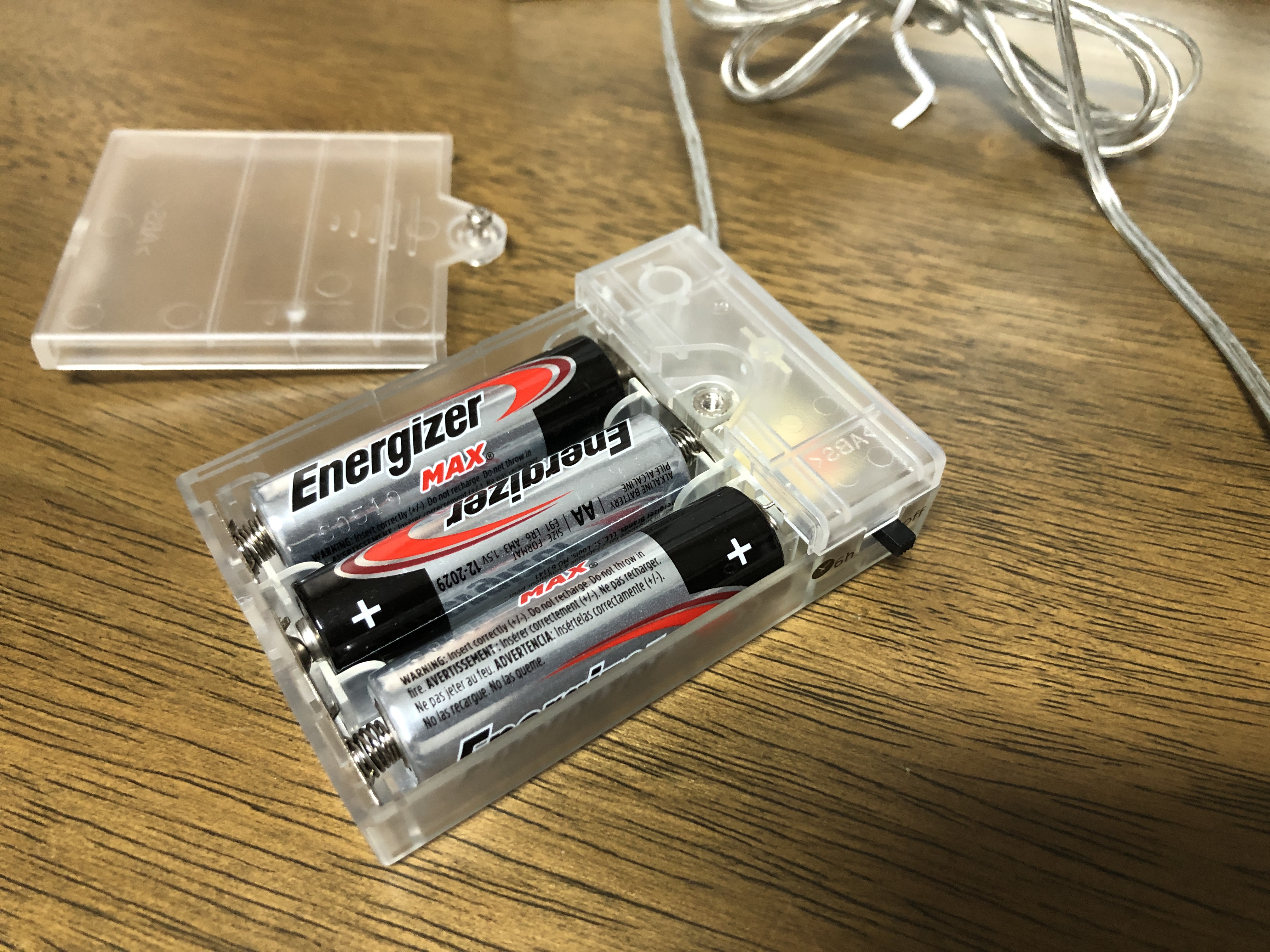 십자 드라이버로 컨트롤 박스를 열어 AA사이즈 건전지 3개를 넣어주면 됩니다.