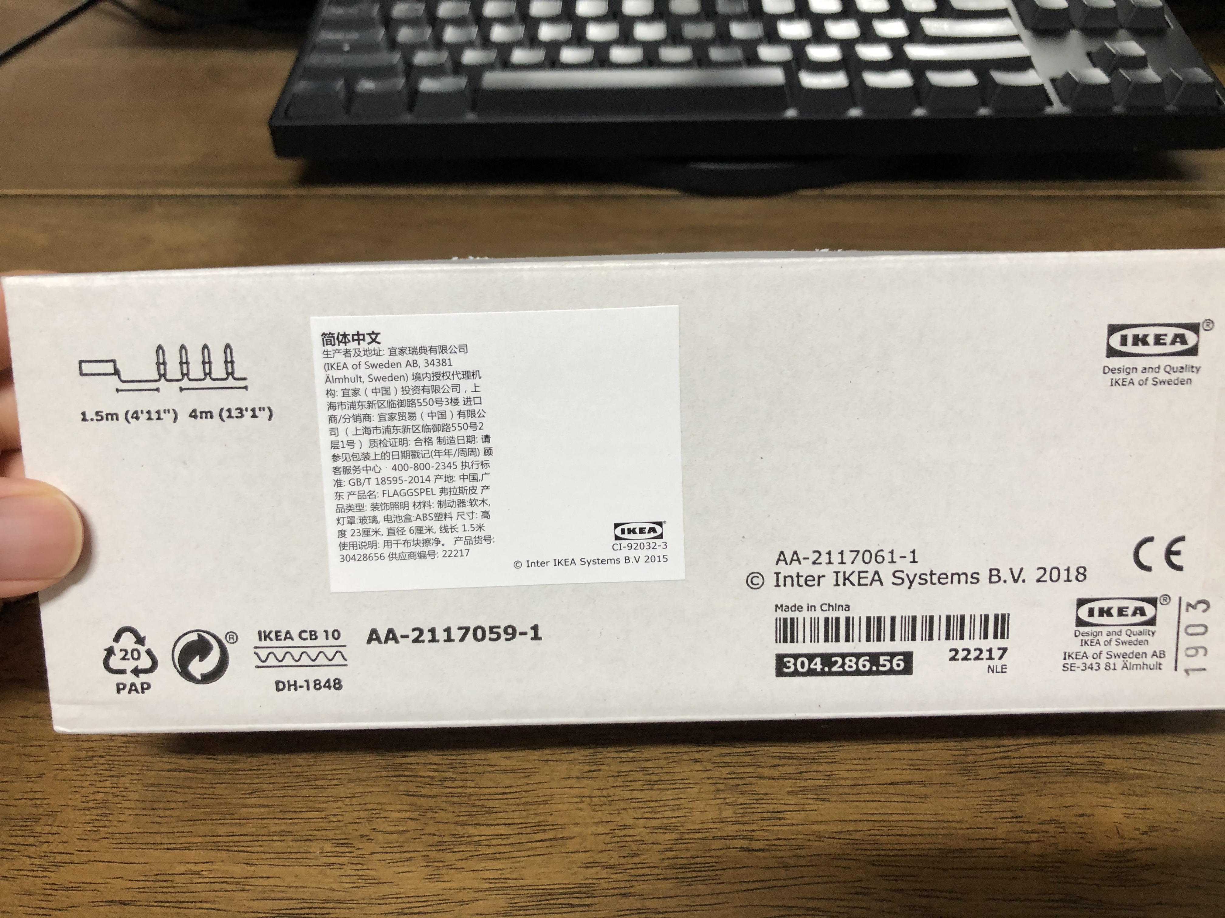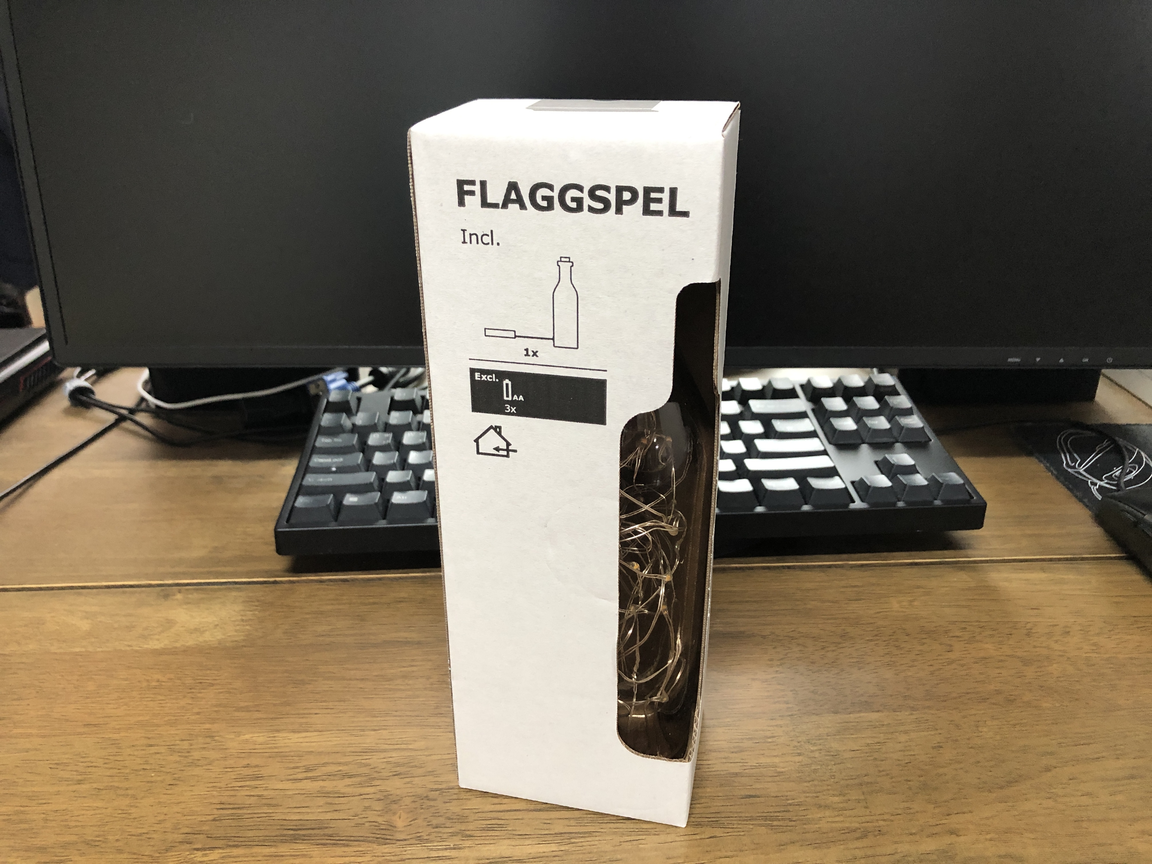 이케아 FLAGGSPEL 플락스펠 장식 조명을 개봉한 모습입니다. 딱 제품, 설명서 끝.