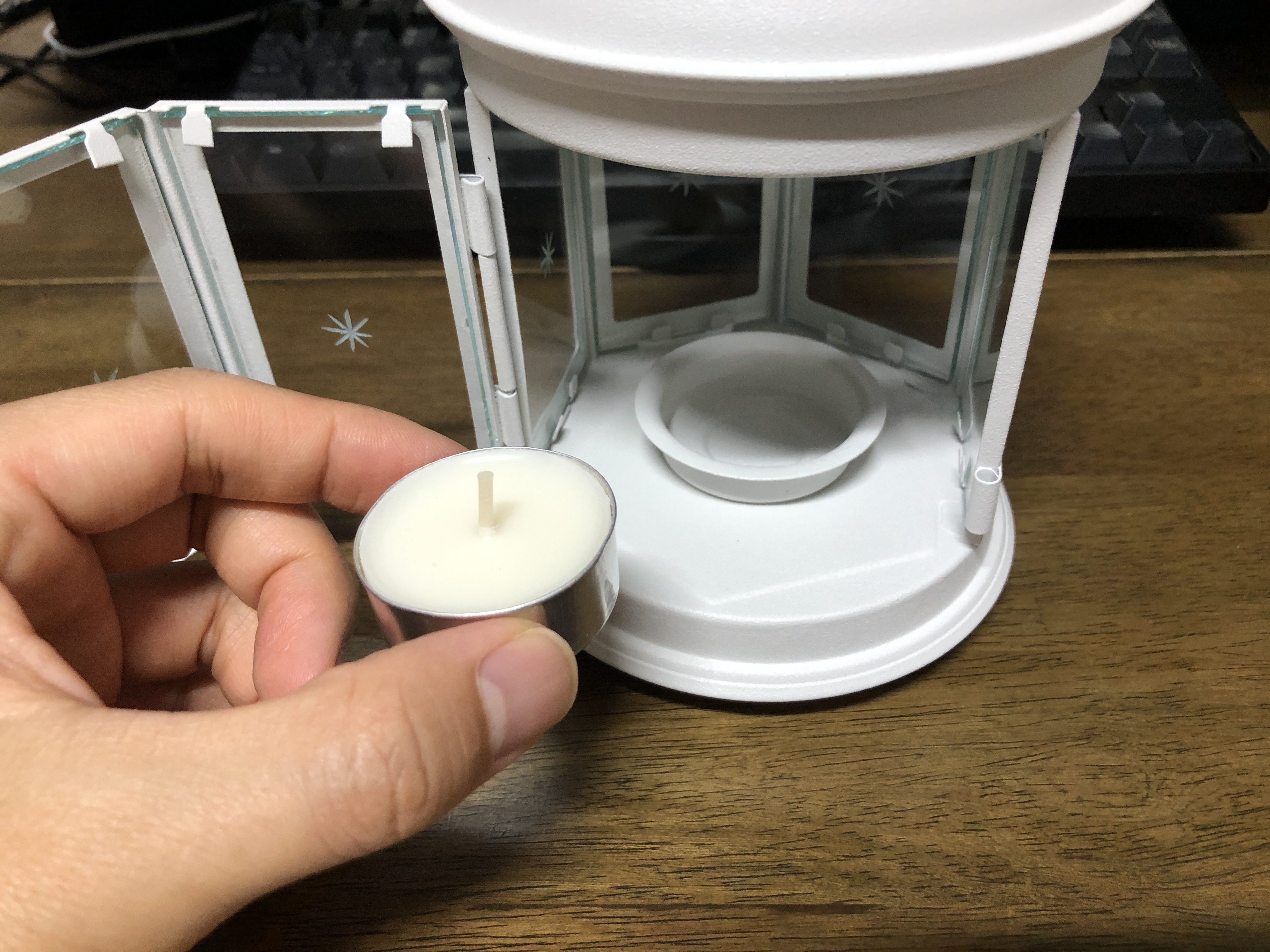 랜턴에 양초를 놓고 불을 켠 모습입니다. 해보니 미니 양초에 불을 붙이고 놓는 것이 더 편할 것 같네요.