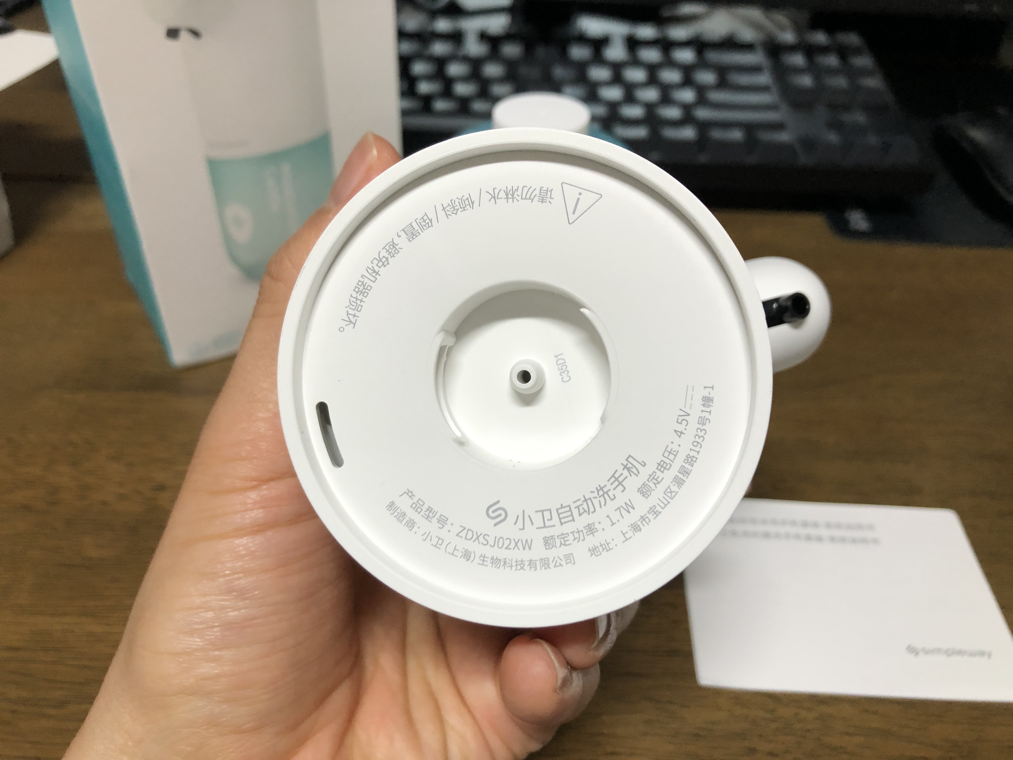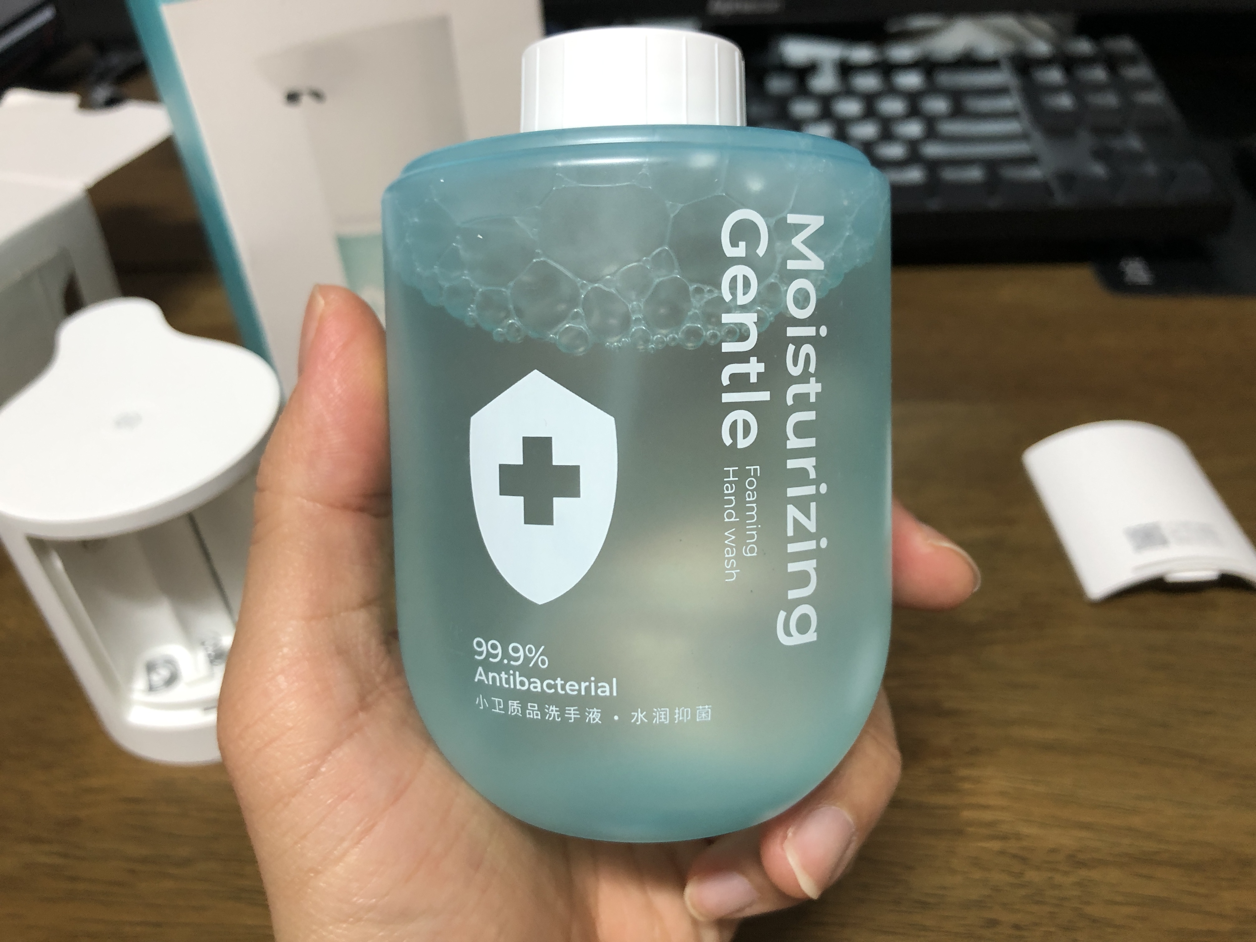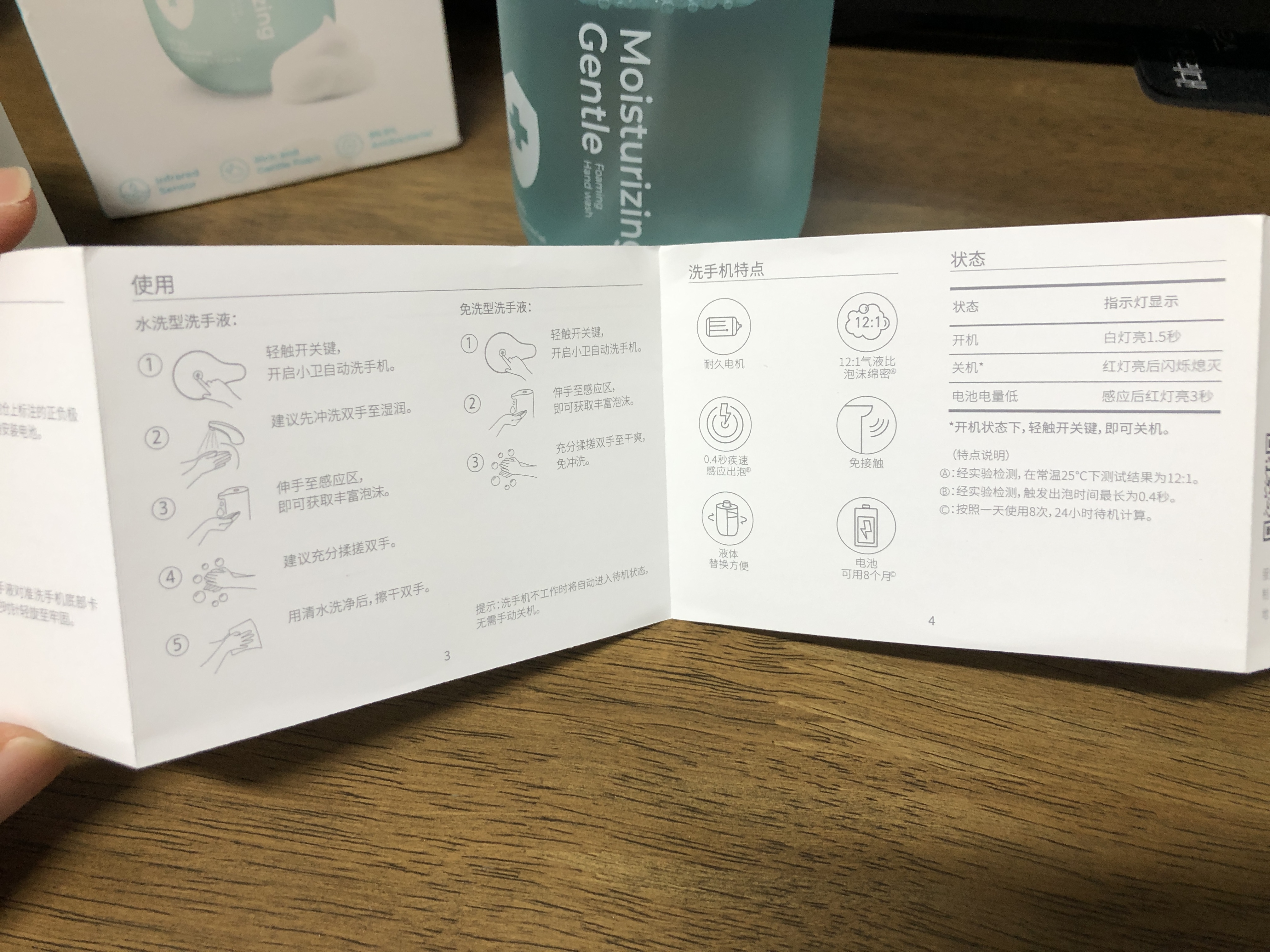박스에 적힌 한자나 중국어를 몰라서 그냥 바로 개봉했습니다. 제품 구성은 사진에 보이다시피 제품 본체와 핸드워시가 담긴 통 그리고 건전기, 설명서가 전부입니다.