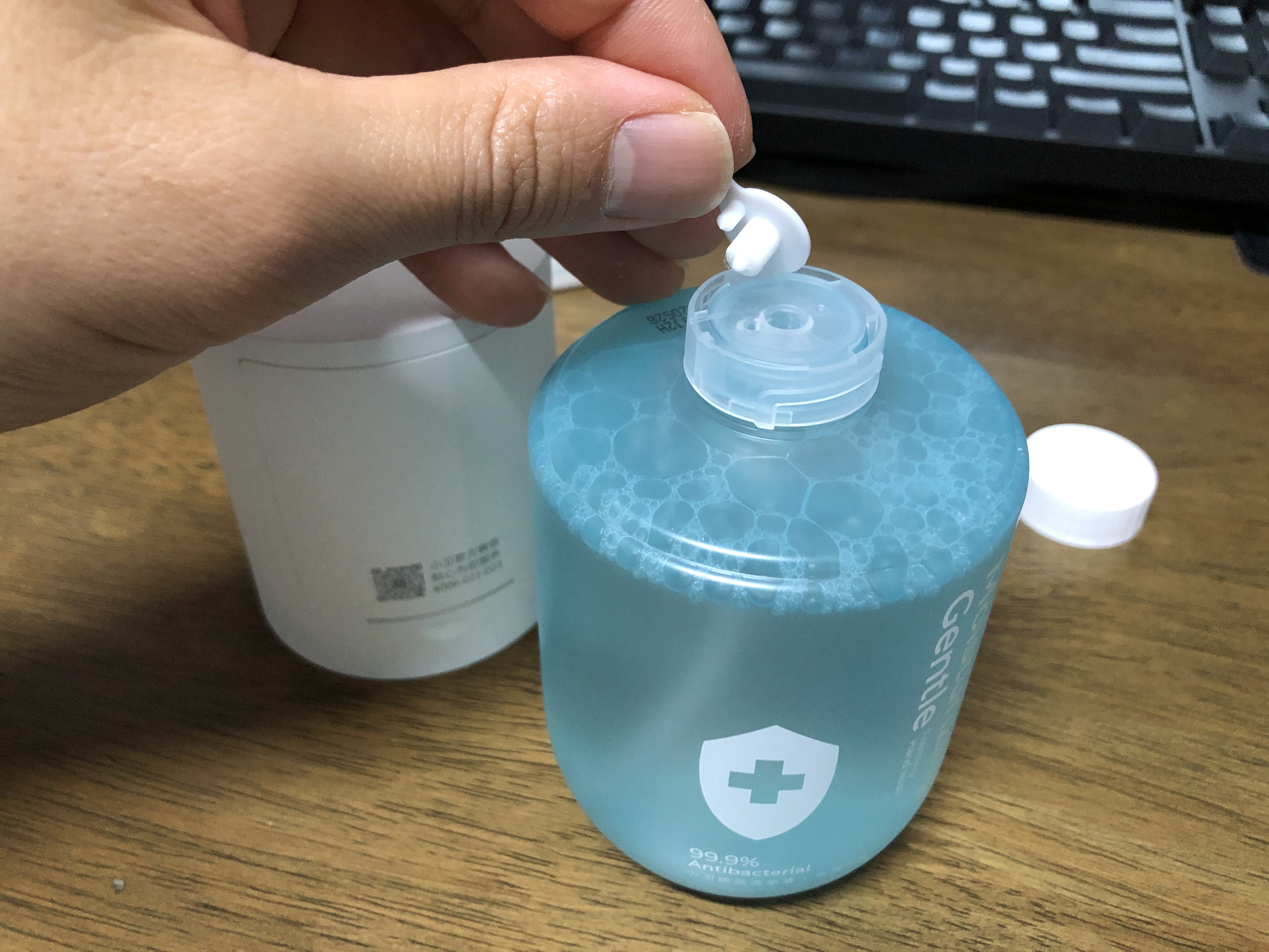샤오미 simpleway 손세정기에 핸드워시까지 장착한 모습.